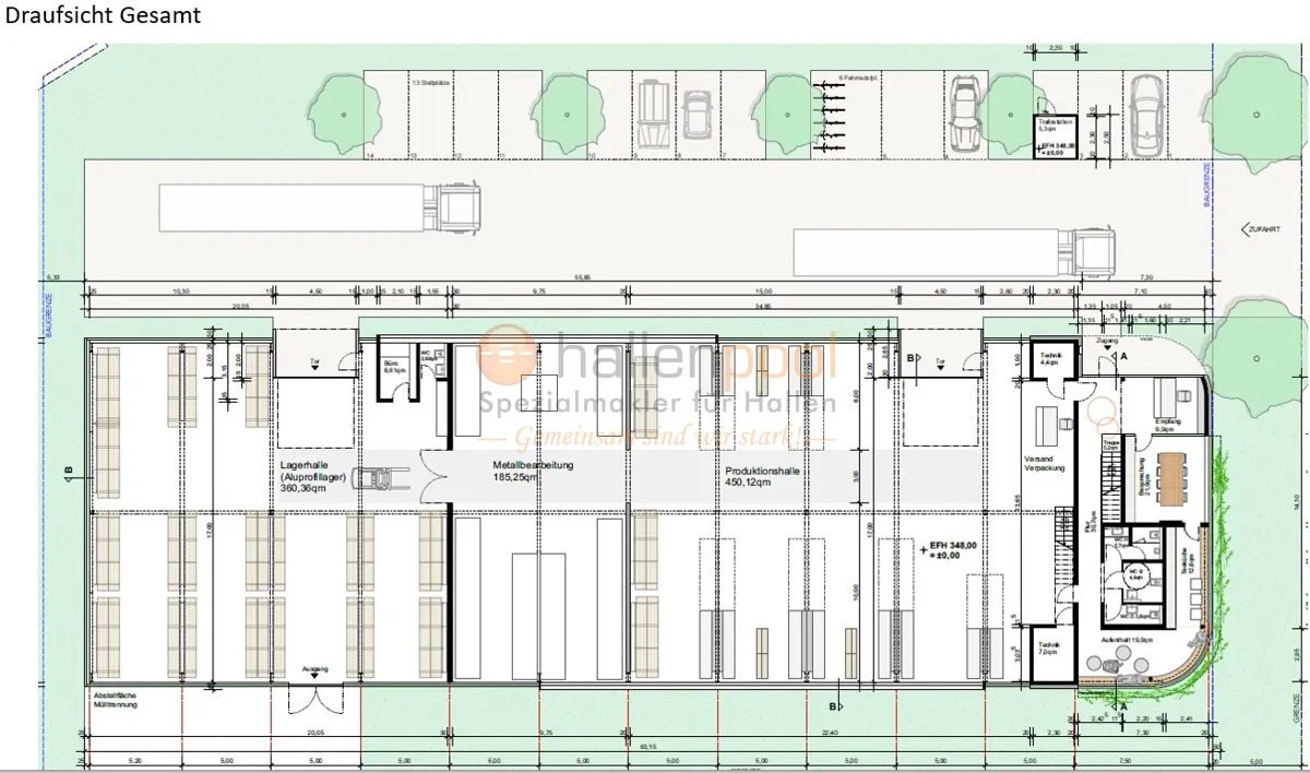 - Hallenhöhe (ca. in m) 6.50