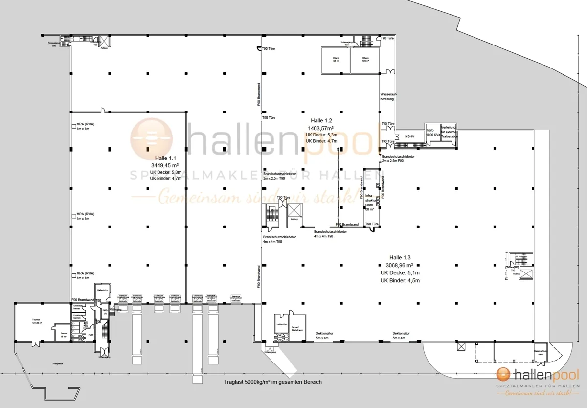 - Hallenhöhe (ca. in m) 6.80